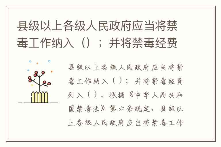 县级以上各级人民政府应当将禁毒工作纳入();并将禁毒经费列入()。