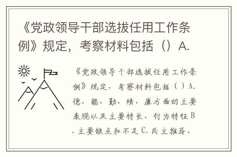 《党政领导干部选拔任用工作条例》规定,考察材料包括()A.德、能、勤、绩、廉方面的主要表现以及主要特长、行为特征 B.主要缺点和不足 C.民主推荐、民主测评、考察谈话情况 D.审核干部人事档案、查核个人有关事项报告、听取纪检监察机关意见、核查信访举报等情况的结论
