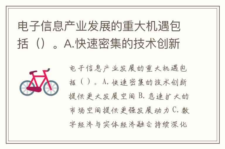 电子信息产业发展的重大机遇包括()。A.快速密集的技术创新提供更大发展空间 B.急速扩大的市场空间提供更强发展动力 C.数字经济与实体经济融合持续深化,推动行业应用市场持续扩大 D.科技创新+适度投资成为后疫情时代经济动能重启的重要引擎 E.对外交流合作进一步深化,电子信息领域的国际市场空间潜力巨大