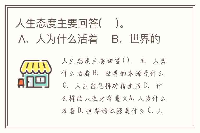 人生态度主要回答C.人应当怎样对待生活。这一选项聚焦于个体在生活实践中形成的稳定心理倾向和行为方式,涵盖如何面对顺境与逆境、如何处理人际关系、如何规划日常行为等现实层面的选择。