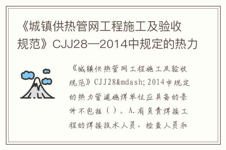 《城镇供热管网工程施工及验收规范》CJJ28—2014中规定的热力管道施焊单位应具备的条件不包括()。A.有负责焊接工程的焊接技术人员、检查人员和检验人员 B.应有保证焊接工程质量达到标准的措施 C.焊工应持有有效合格证,并应在合格证准予的范围内焊接 D.应具有施工所需的吊装及安装设备