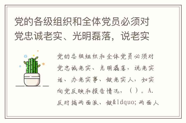 党的各级组织和全体党员必须对党忠诚老实、光明磊落,说老实话、办老实事、做老实人,如实向党反映和报告情况,()。A.反对搞两面派、做“两面人” B.反对弄虚作假、虚报浮夸 C.反对拉帮结派、搞团团伙伙 D.反对隐瞒实情、报喜不报忧