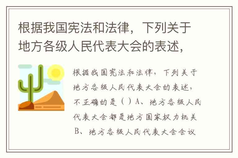 A:地方各级人民代表大会是地方国家权力机关,这是宪法明确的性质定位。