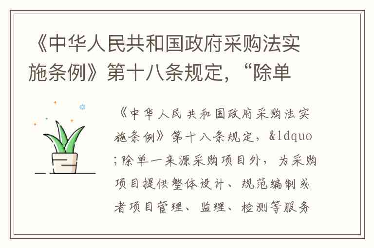这一规定的核心逻辑在于防止利益冲突与保证采购公正性。例如,若某供应商已为项目提供整体设计服务,其可能掌握技术参数、预算控制等核心信息,若再参与该项目的设备采购投标,将形成"既当裁判员又当运动员"的局面。但法律并不禁止同一供应商同时承担设计与监理等同类服务——正如财政部在答复中明确的,参与可行性研究(属设计服务)的单位"可以参与该项目管理、监理、检测服务",因为这些服务同属项目前期咨询范畴,不存在直接竞争关系。