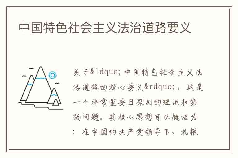 关于“中国特色社会主义法治道路的核心要义”,这是一个非常重要且深刻的理论和实践问题。其核心思想可以概括为:在中国的共产党领导下,扎根中国国情和社会制度,坚持和完善中国特色社会主义法治体系,以实现国家治理体系和治理能力现代化为目标的一套法治理念、原则和路径。