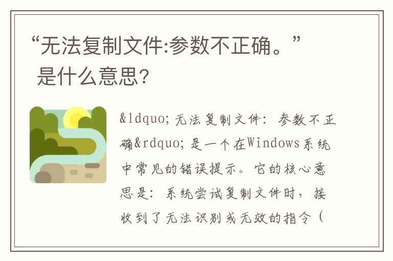 “无法复制文件:参数不正确”是一个在Windows系统中常见的错误提示。它的核心意思是:系统尝试复制文件时,接收到了无法识别或无效的指令(参数),导致操作无法完成。