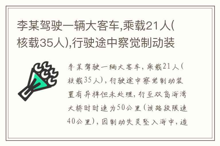 结论:李某的主要违法行为是 明知车辆制动系统有故障仍驾驶(驾驶具有安全隐患的机动车),以及在事故路段 超速行驶。这两项违法行为共同作用,最终导致了车辆在危险路段因制动失灵而失控坠海的重大伤亡事故。