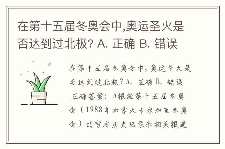 根据第十五届冬奥会(1988年加拿大卡尔加里冬奥会)的官方历史记录和相关报道,正确答案是 A. 正确。