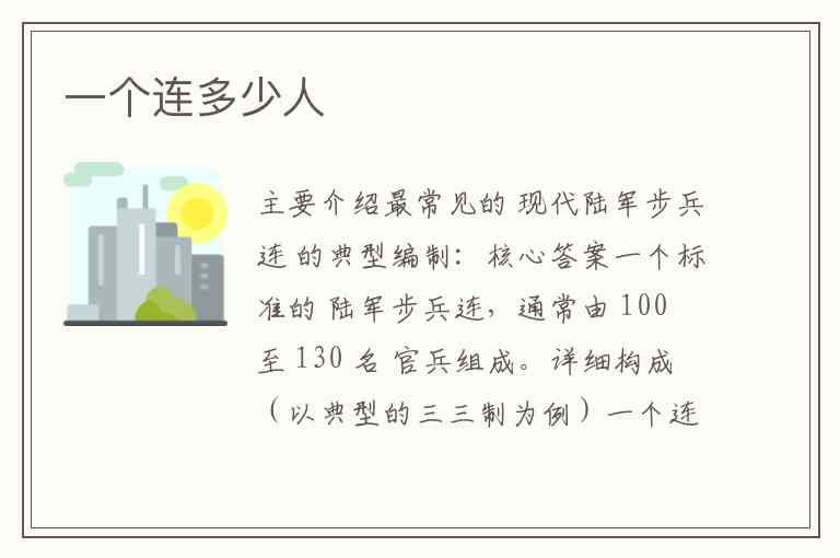 一个标准的 陆军步兵连,通常由 100 至 130 名 官兵组成。