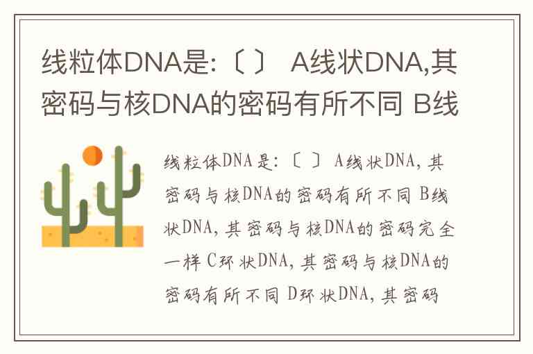 正确答案是 C:环状 DNA,其密码与核 DNA 的密码有所不同。