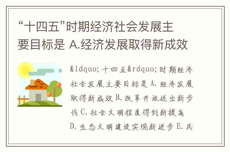 “十四五”时期经济社会发展主要目标是 A.经济发展取得新成效 B.改革开放迈出新步伐 C.社会文明程度得到新提高 D.生态文明建设实现新进步 E.民生福祉达到新水平 F.国家治理效能得到新提升 答案:(ABCDEF)