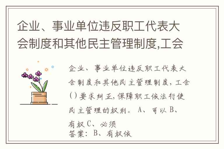 企业、事业单位违反职工代表大会制度和其他民主管理制度,工会( )要求纠正,保障职工依法行使民主管理的权利。 A、可以 B、有权 C、必须答案:B、有权