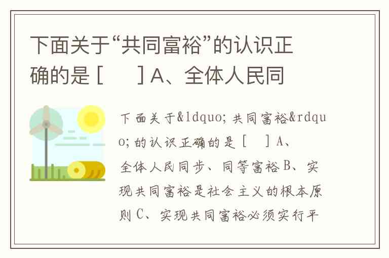 A 错误:共同富裕不是“同步、同等富裕”,而是允许一部分人、一部分地区先富起来,先富带后富,逐步实现全体人民共同富裕,存在合理差别与发展时序。