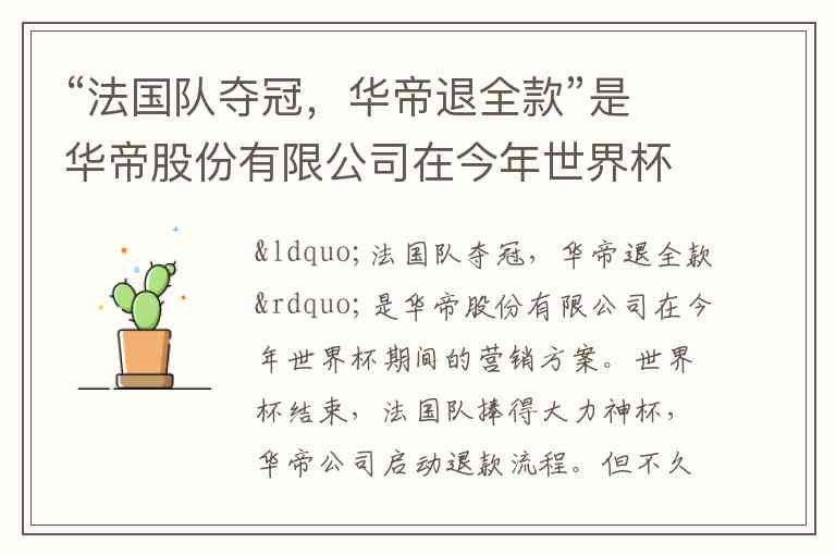 “法国队夺冠,华帝退全款”是华帝股份有限公司在今年世界杯期间的营销方案。世界杯结束,法国队捧得大力神杯,华帝公司启动退款流程。但不久之后,就有不少此前通过电子商务平台购买“冠军套餐”的消费者发现,“退款”变成了退等额的购物卡,华帝公司未能依约定兑现承诺。华帝借着世界杯的东风,吸引了所有人的注意。如果华帝遵守诚信履约,那么这就是一波完美的营销,可是差劲的收尾,却让这波营销的效果大打折扣,花了钱还败坏自己的口碑。据此回答 10-11题 诚信对个人来说也非常重要,是一个人安身立命之本。据此青少年应该做到( ) ①依法惩处失信行为 ②真诚待人,信守承诺 ③大事讲诚信,小事就不必太计较了 ④劝阻抄袭作业、考试作弊等失信行为A. B. C. D.