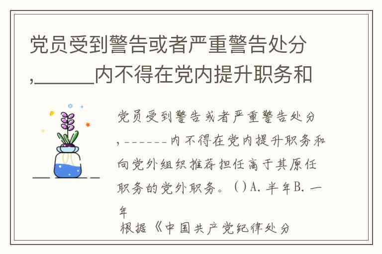 但题干中“警告或者严重警告处分”对应的时间,若按警告处分的情况判断标准,是 一年;若按严重警告则是一年半。题干将两者合并为同一空,一般此类试题若只选一个时间,则按最短限制期(警告处分的一年) 作为统一答案。但严格来说,两者期限不同,出题可能不够严谨。