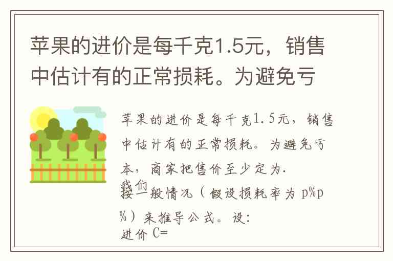 苹果的进价是每千克1.5元,销售中估计有的正常损耗。为避免亏本,商家把售价至少定为.