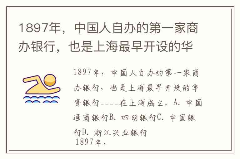 1897年,中国人自办的第一家商办银行,也是上海最早开设的华资银行____在上海成立。