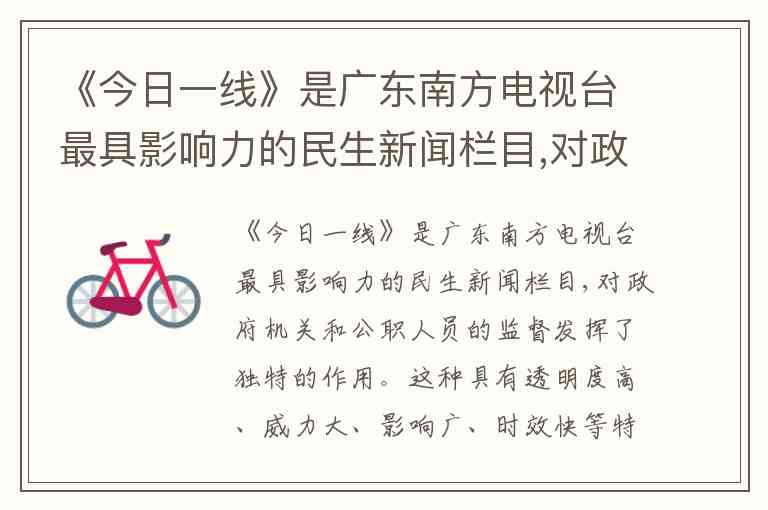 总结:舆论监督制度是公民和媒体行使监督权的重要体现。《今日一线》作为一档电视新闻栏目,正是通过新闻报道发挥舆论监督作用的典型代表。