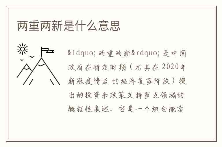 需要区分的常见提法你可能会听到一个非常相似的词:“两新一重”。这是2020年《政府工作报告》中的标准官方提法,其内涵与“两重两新”基本一致,只是排序和侧重点略有不同: