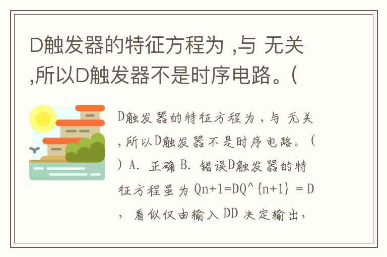 D触发器的特征方程为 ,与 无关,所以D触发器不是时序电路。( ) A. 正确 B. 错误