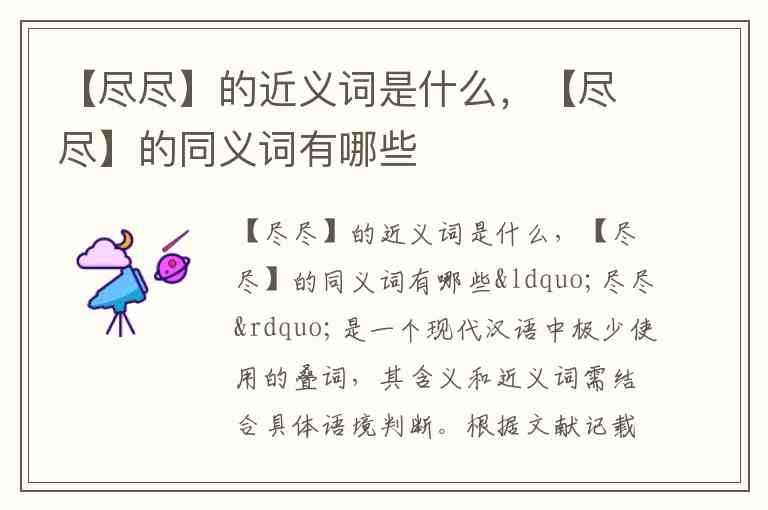 “尽尽”是一个现代汉语中极少使用的叠词,其含义和近义词需结合具体语境判断。根据文献记载,它主要有三种语义: