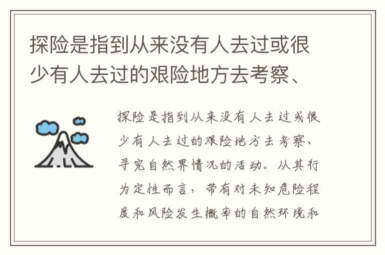 要判断哪个选项不属于探险,需紧扣定义的核心要素:主动前往“很少有人去过的艰险地方”,并以“考察、寻究自然界情况”为目的,且具有“明知危险仍主动冒险”的特征。