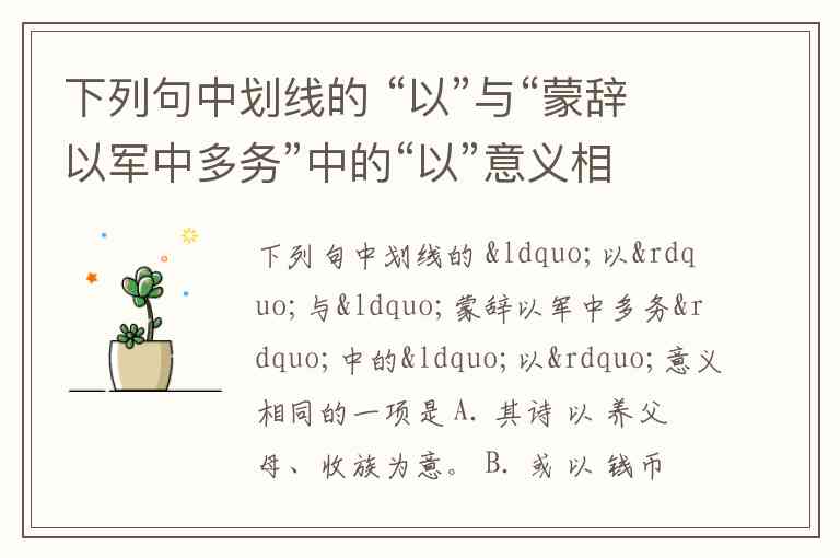 要判断与“蒙辞以军中多务”中“以”意义相同的选项,需先明确题干中“以”的用法。该句出自《孙权劝学》,“辞以军中多务”为状语后置,正常语序是“以军中多务辞”,意为“用军中事务繁多来推辞”,“以”为介词,表方式或工具,可译为“用、拿”。