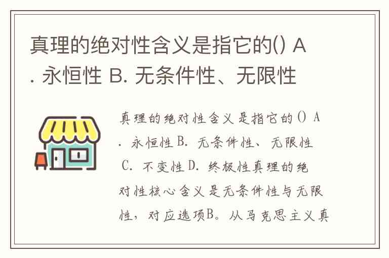 真理的绝对性含义是指它的() A. 永恒性 B. 无条件性、无限性 C. 不变性 D. 终极性