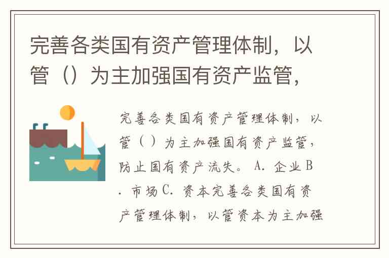 完善各类国有资产管理体制,以管()为主加强国有资产监管,防止国有资产流失。 A. 企业 B. 市场 C. 资本