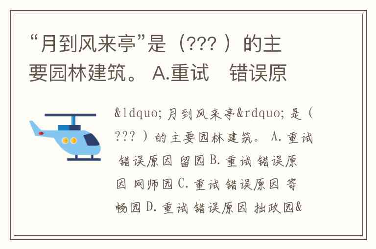 “月到风来亭”是(??? )的主要园林建筑。 A. 留园 B. 网师园 C. 寄畅园 D. 拙政园