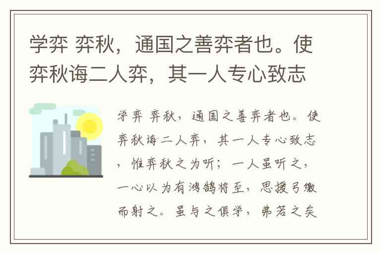 “通国之善弈者也”中“善”的意思是A. 善于,擅长。
