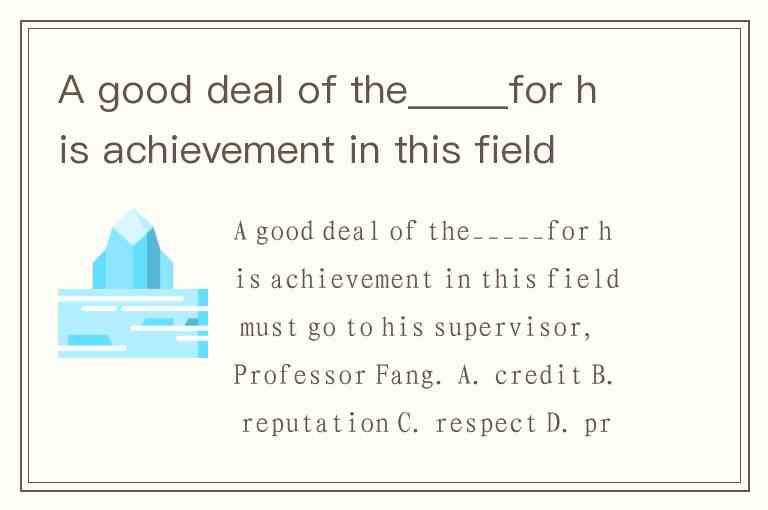 A good deal of the_____for his achievement in this field must go to his supervisor, Professor Fang. A. credit B. reputation C. respect D. praise