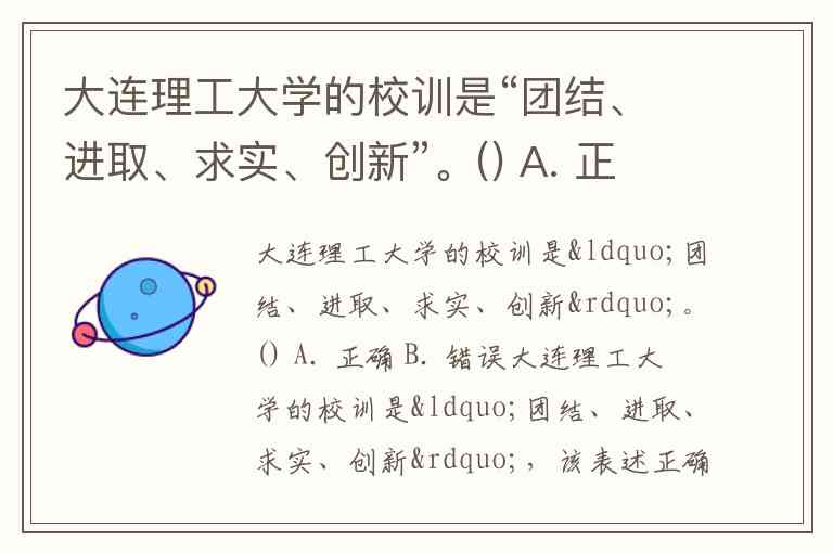 大连理工大学的校训是“团结、进取、求实、创新”。() A. 正确 B. 错误