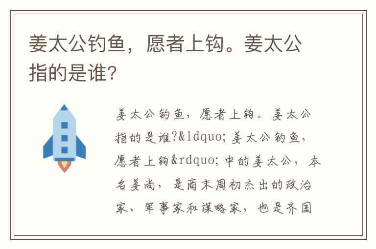 姜太公钓鱼,愿者上钩。姜太公指的是谁?