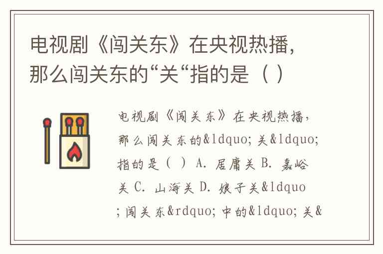 电视剧《闯关东》在央视热播,那么闯关东的“关“指的是( ) A. 居庸关 B. 嘉峪关 C. 山海关 D. 娘子关