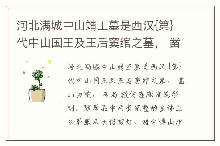 河北满城中山靖王墓是西汉第一代中山国王及王后窦绾之墓。