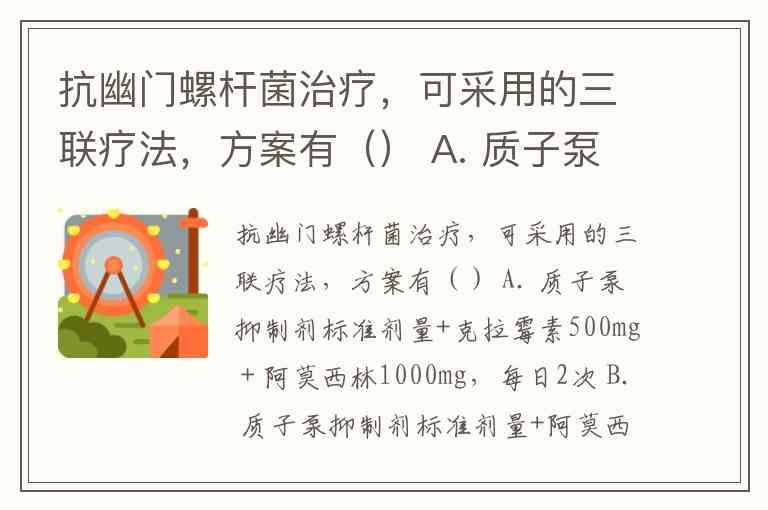 3. 题目答案:如果题目问的是“可采用的三联疗法”,那么正确选项是 A、B、C。如果题目是单选题,则A选项是历史上最经典、最具代表性的三联疗法组合。