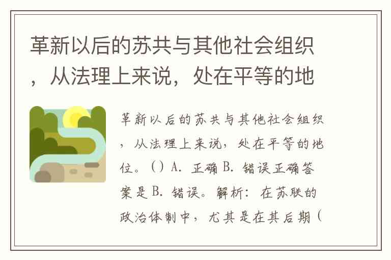 历史背景:题目中提到的“革新以后”很可能指戈尔巴乔夫改革时期,但直到1991年苏联解体,苏共在法律上和实际中始终没有与其他社会组织处于完全平等的地位。