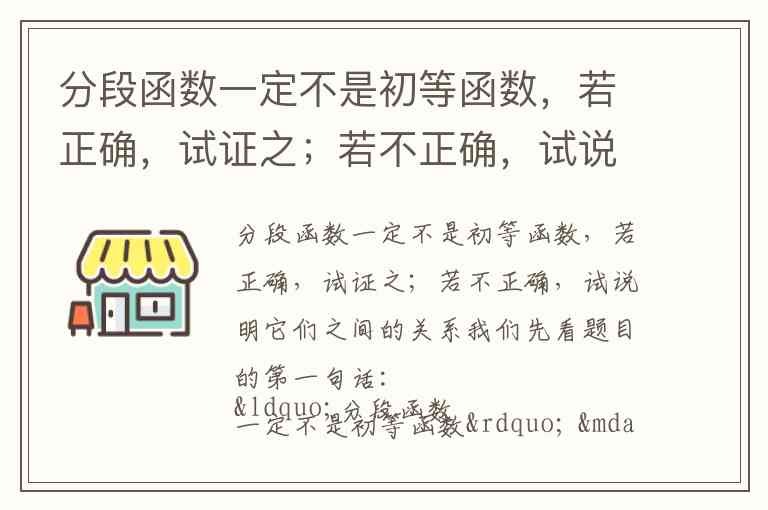 分段函数一定不是初等函数,若正确,试证之;若不正确,试说明它们之间的关系