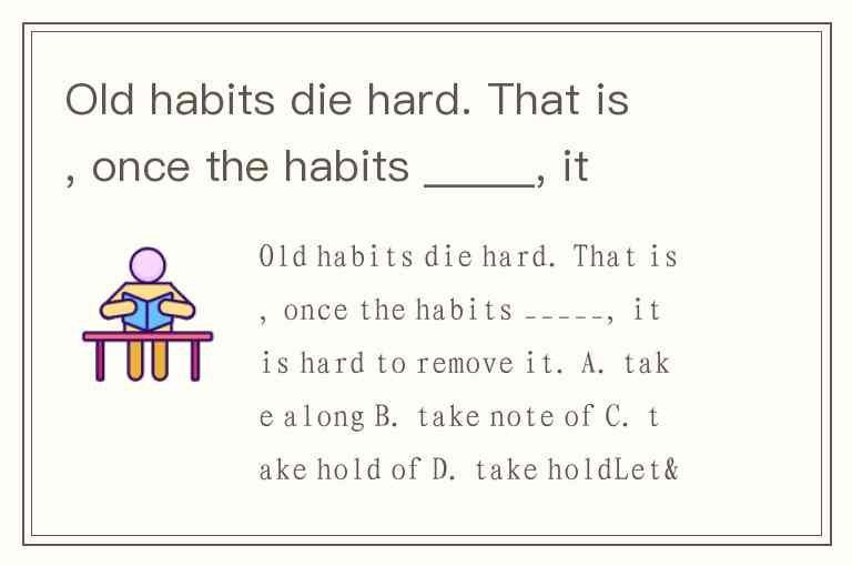 Old habits die hard. That is, once the habits _____, it is hard to remove it. A. take along B. take note of C. take hold of D. take hold