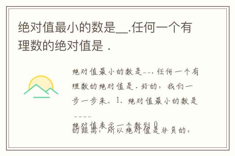 但题目这里是说“任何一个有理数的绝对值是…”,似乎想表达的是绝对值具有的性质,比如 非负性,所以一般回答 非负数 或 0 或正数,但更标准的说法是 非负数(因为非负数包括 0 和正数)。
