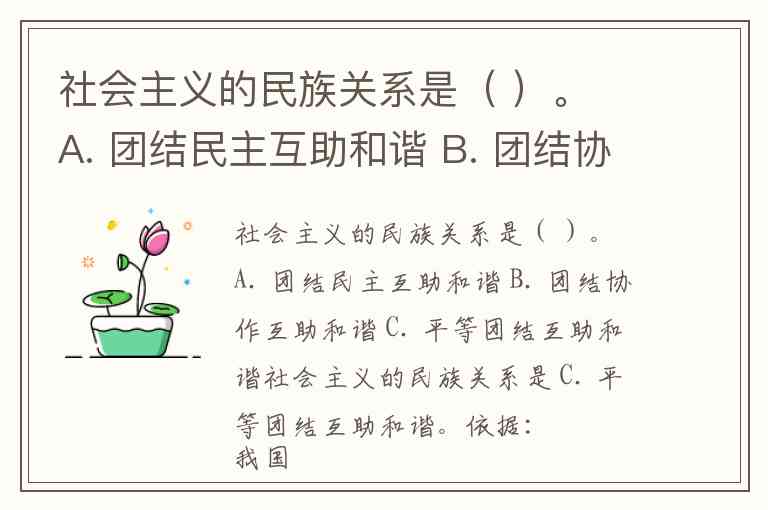 社会主义的民族关系是( )。 A. 团结民主互助和谐 B. 团结协作互助和谐 C. 平等团结互助和谐