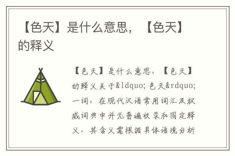 关于“色天”一词,在现代汉语常用词汇及权威词典中并无普遍收录和固定释义,其含义需根据具体语境分析。以下是对该词可能的解释和说明: