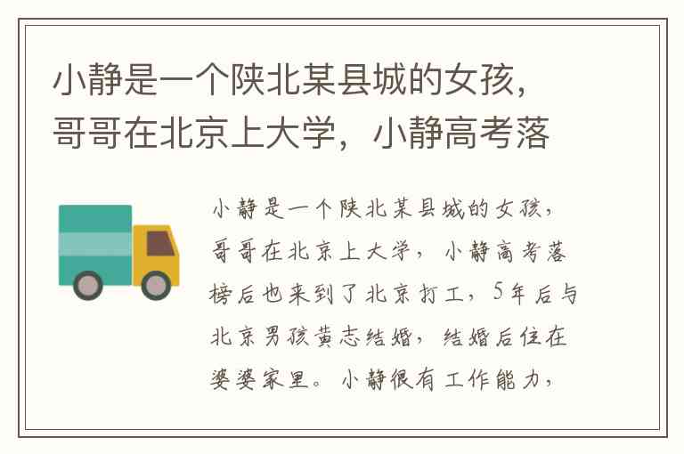 自我认同危机:小静的抑郁与她无法在家庭角色和社会角色之间找到平衡有关。她来北京打工本是为了追求独立和发展,但婚后被迫回归家庭,这种“失去自我”的落差感加剧了她的心理冲突。
