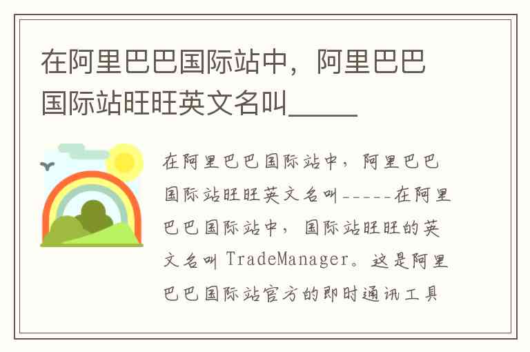在阿里巴巴国际站中,阿里巴巴国际站旺旺英文名叫_____