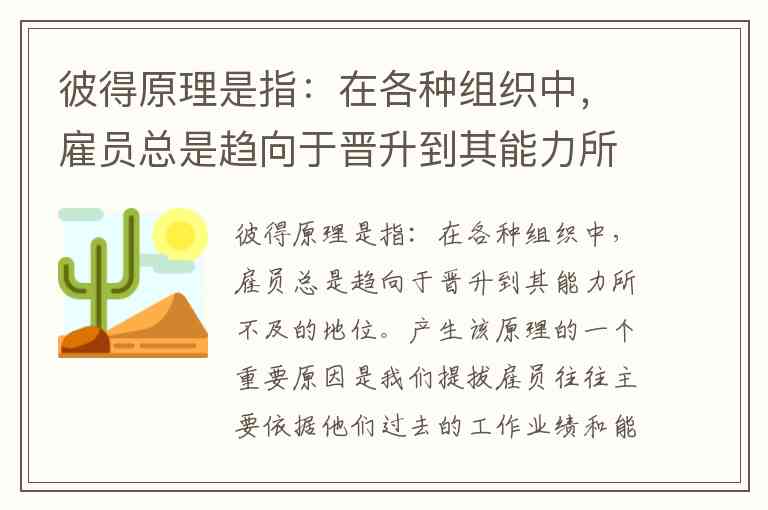 我们先明确彼得原理的关键特征: