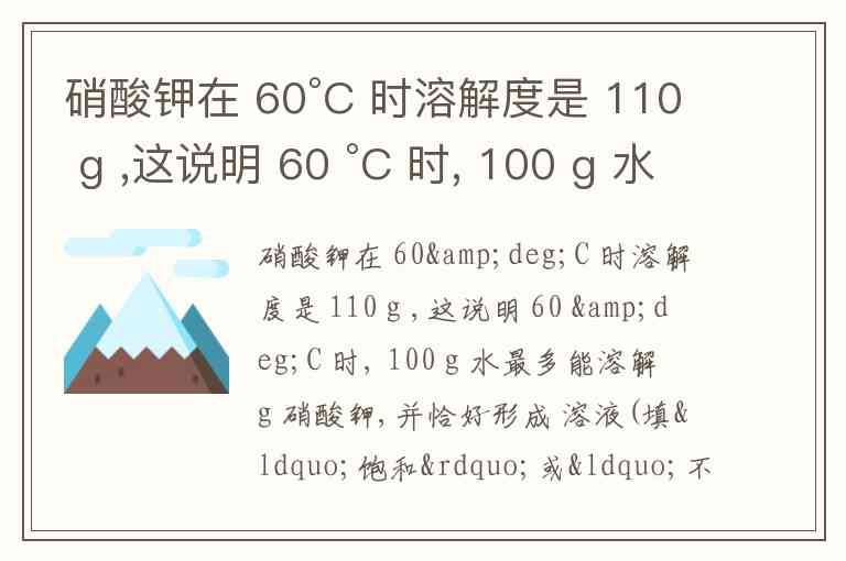 这是指在 60°C 时,100 g 水 中最多溶解硝酸钾的质量。