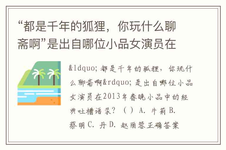 “都是千年的狐狸,你玩什么聊斋啊”是出自哪位小品女演员在2013年春晚小品中的经典吐槽语录?() A. 牛莉 B. 蔡明 C. 丹 D. 赵丽蓉