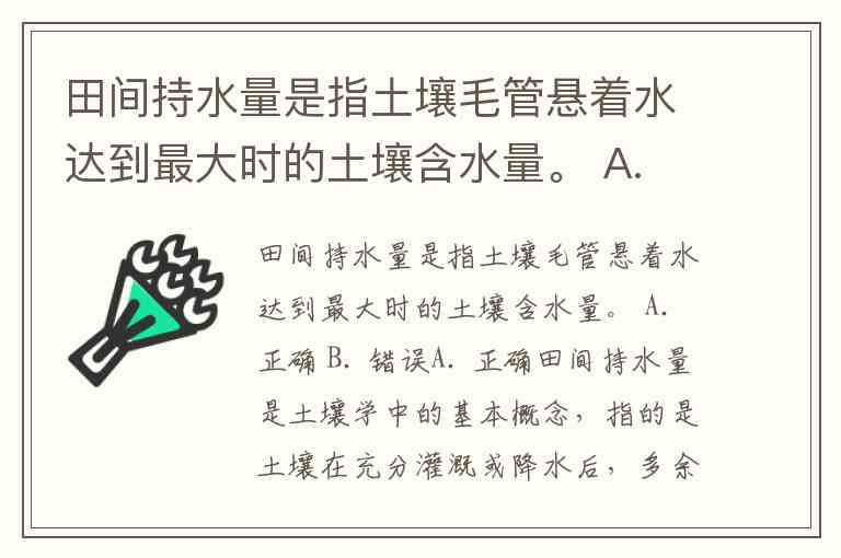 田间持水量是指土壤毛管悬着水达到最大时的土壤含水量。 A. 正确 B. 错误