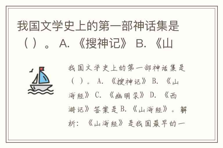 我国文学史上的第一部神话集是( )。 A. 《搜神记》 B. 《山海经》 C. 《幽明录》 D. 《西游记》